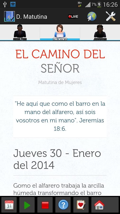 Desde tu Smartphone podrás leer la Devoción Matutina de Adultos, Mujeres, y Jóvenes. Ya no tendrás excusa de no leer y lo mejor es que no te perderás de las increíbles historias que tienen para ti este año. Te aseguro que encontrarás historias fabulosas e interesantes, que no sólo te ayudaran en la vida espiritual.